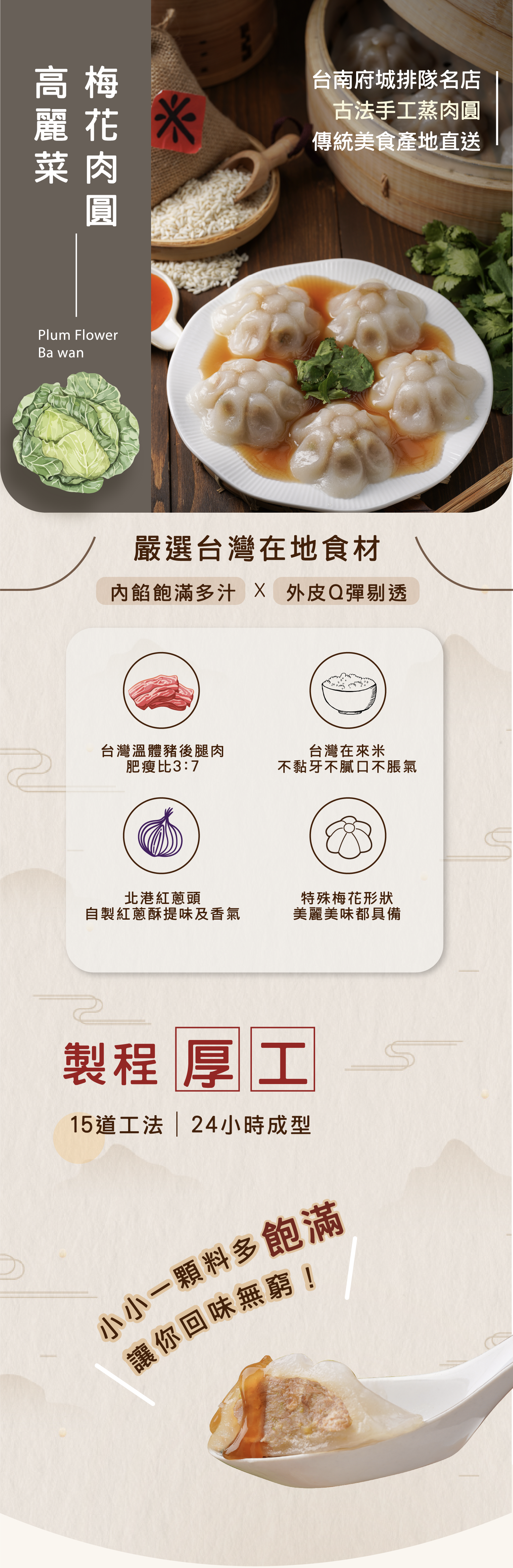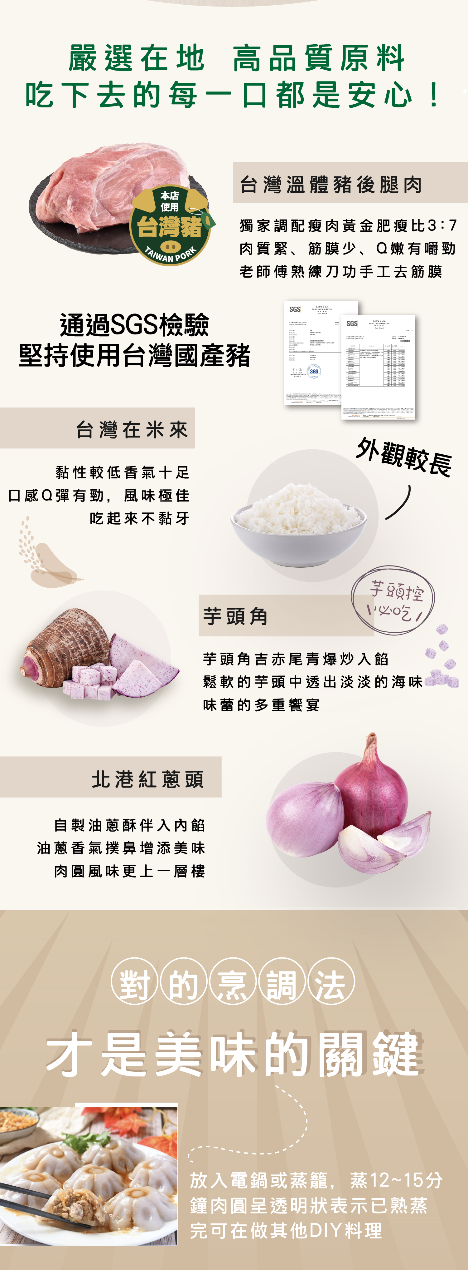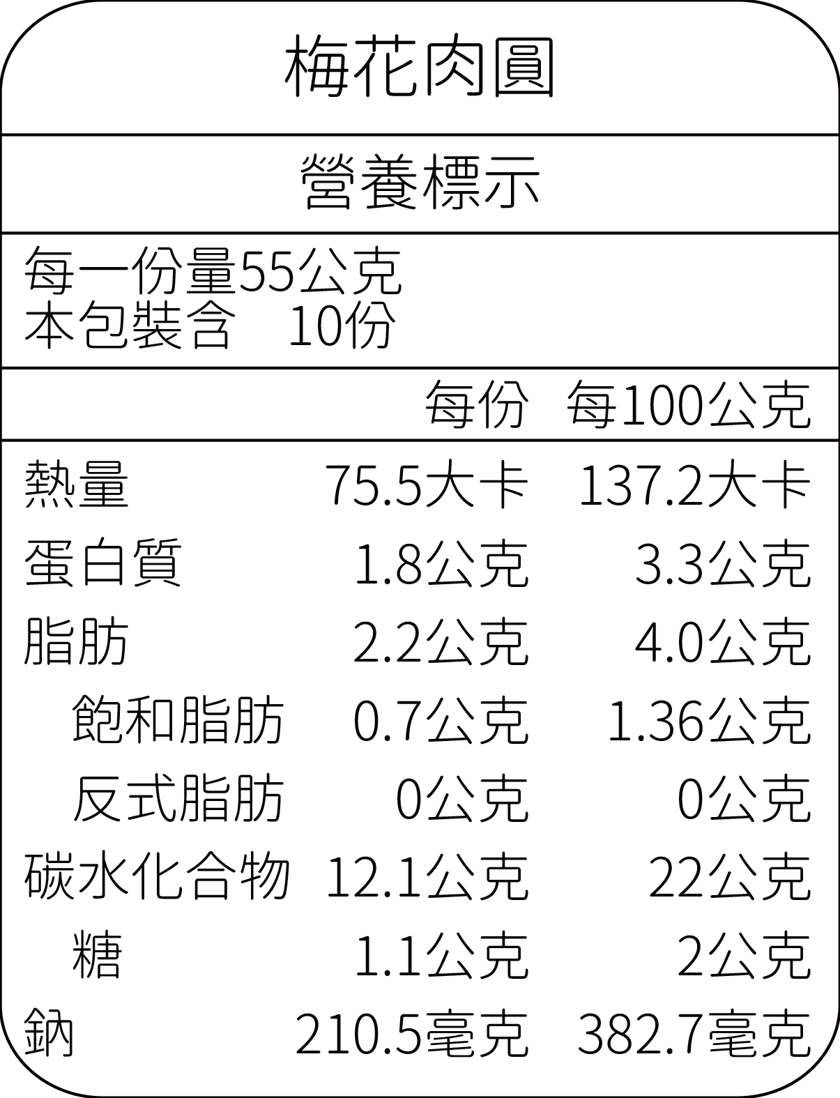 - 內容物:肉圓(55公克/10顆)、醬包(25公克/2包)。